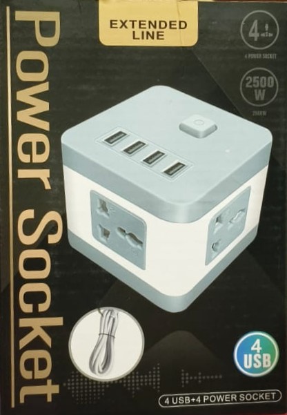 NEW CUBE 4-WAY 3 PORTS AND A TYPE-C EXTENSION SOCKET (3 in 1 Chargeing Cable free)